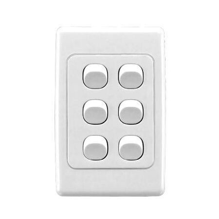 The Six Gang Switch 10A Standard Design White Finish is available now for immediate purchase. Ideal for residential and commercial lighting control applications.