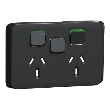 Alternatively Known As: Clipsal Iconic Twin Power Point, Double Power Outlet with Extra Switch, Horizontal Double Socket, CLI3025XCXB, Iconic Black Double GPO