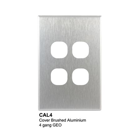 Slimline four gang switch cover plate with brushed aluminium finish and stylish design—ideal for modern homes. Built for easy installation, with a clip-on feature for seamless style upgrades.