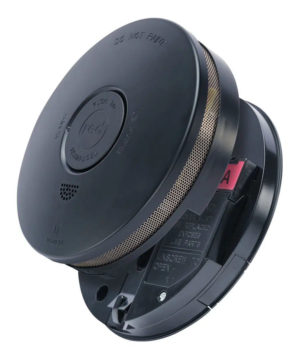 Smoke Alarm Black Dual Power | 240V Mains & 10YR Lithium Backup | Insect Guard | by Red Smoke Alarms