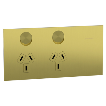 Alternatively Known As: Clipsal double power point, twin switched socket, 10A double GPO, brushed brass power outlet, Clipsal 1025-BB