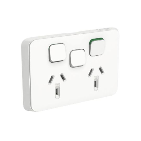 Alternatively Known As: Clipsal double power point, Clipsal 3025XAVW, double GPO with extra switch, horizontal power outlet, Clipsal vivid white socket