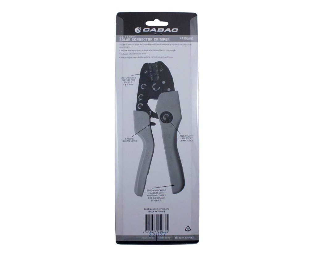 The Cabac Solar Connector Crimper 2.5/4/6 Sq.mm is available for immediate purchase, ideal for professional solar panel installation and maintenance.