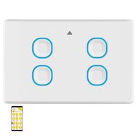 Smart Zigbee quad gang light switch with touch capacitive controls and blue backlight—ideal for homes and offices. Built for seamless integration, with UV resistant material and app-controlled on/off functionality.