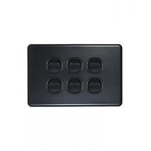Horizontal 6 gang switch with 10AX/16A current rating and 250V capacity—ideal for residential and commercial spaces. Built for high load applications, with a durable matt black finish for modern aesthetics.
