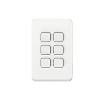 Vertical 6 gang switch with 10AX/16A at 250V~—ideal for residential and commercial settings. Built for efficient power management, with a sleek white finish for modern aesthetics.
