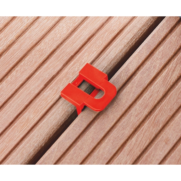 The Terrace Board Spacer is designed for easy and precise alignment of terrace boards, featuring a durable plastic construction suitable for outdoor use. Ideal for both DIY enthusiasts and professionals, this spacer ensures consistent gaps of 6 or 8 mm for a perfect finish in wooden terrace construction. Use it in combination with a decking construction clamp for optimal results.