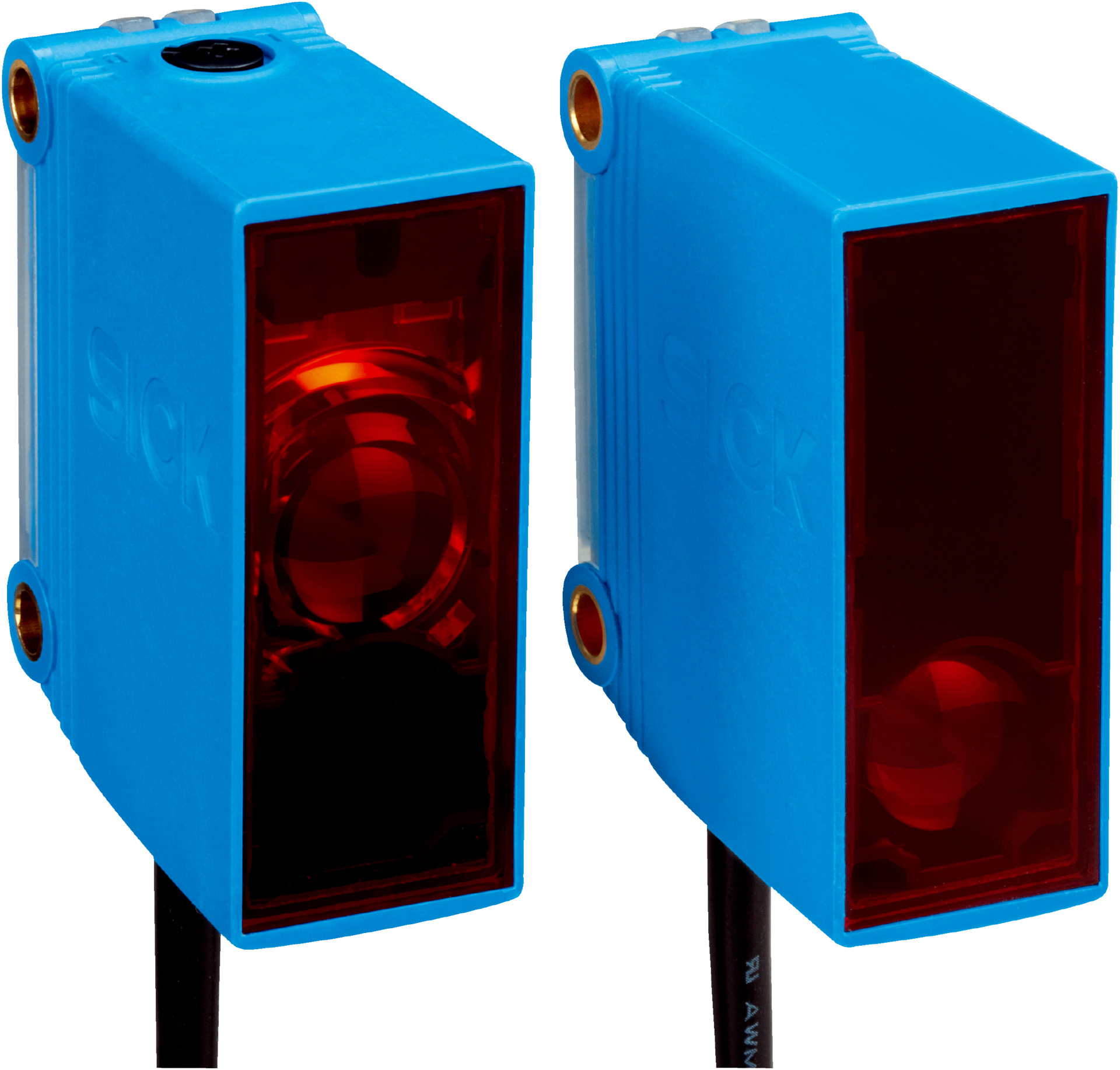 - Through-beam photoelectric sensor with visible red light