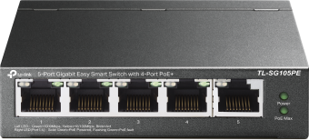 The TP-LINK 5-Port Easy Smart Gigabit Switch is designed for efficient network management, featuring four PoE+ ports with up to 30W each and a total power budget of 65W. Ideal for small to medium business networks, IP cameras, and VoIP phones, this switch supports VLAN and traffic prioritization, ensuring optimal performance for your devices. Its fanless metal case design guarantees silent operation and low energy consumption.