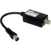 4G LTE filter with plastic insulated housing and 75Ω female F type to male Pal connector—ideal for DVB-T TV antenna systems. Built for excellent digital signal reception, with integrated LTE and GSM filtering.