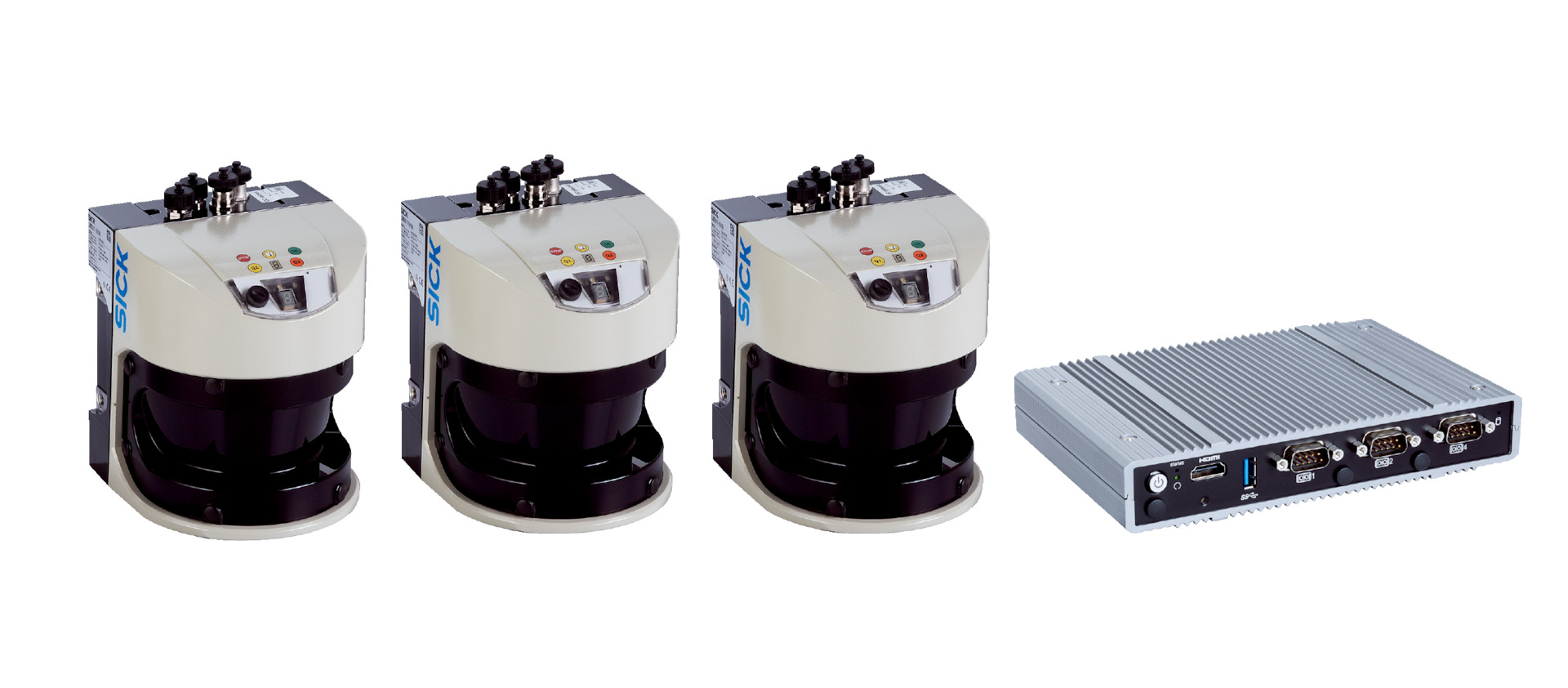 - 3-scanner solution covering up to 4 lanes with max 9 sensors per system